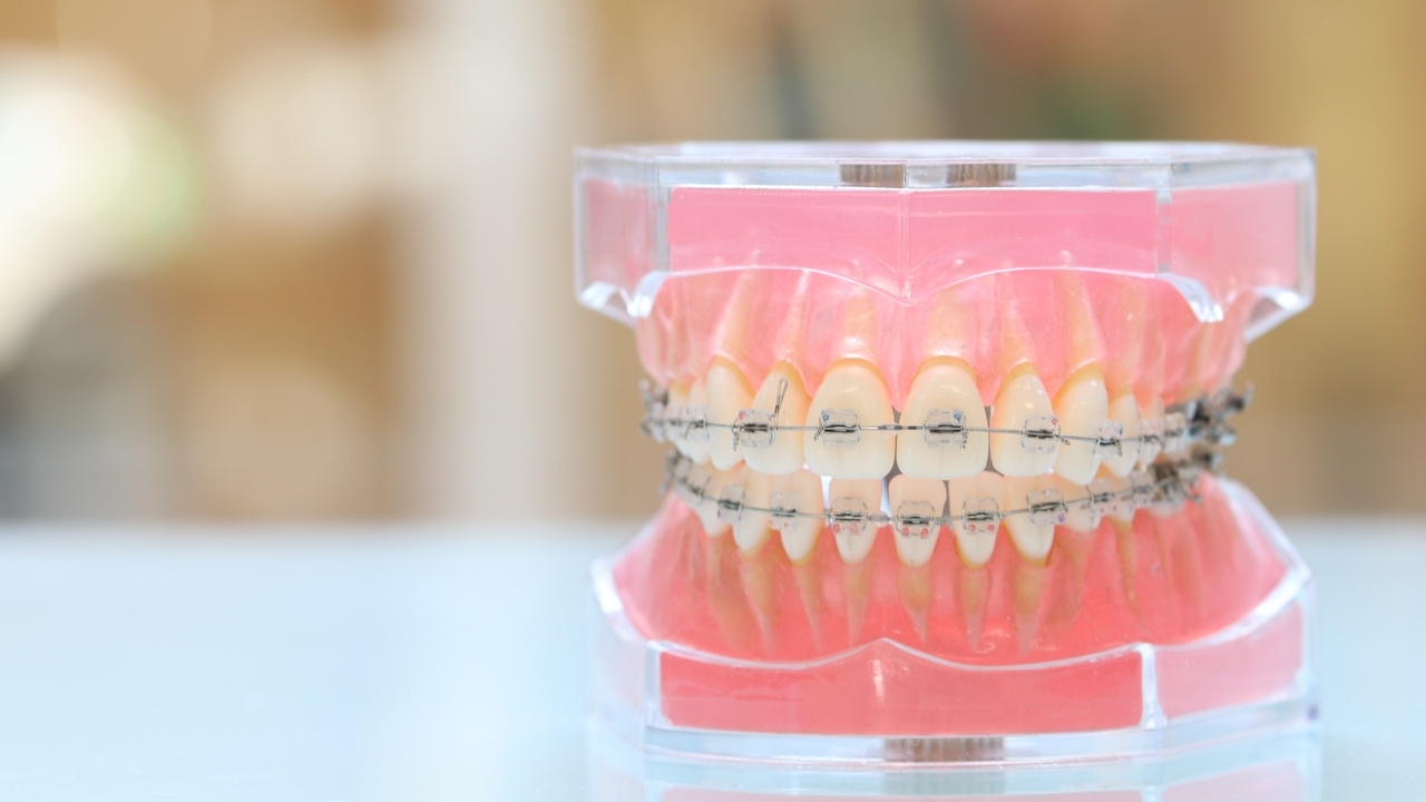 歯にブラケットと呼ばれる装置とワイヤーをつけて、歯やあごの骨に力をかけながら歯を動かし、歯並びを整えていく歯列矯正です。