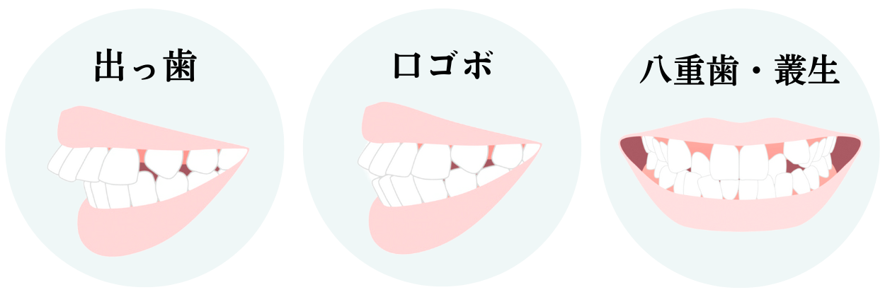 上だけでなく下の前歯も飛び出した口ゴボや、歯がガタガタの叢生(乱杭歯)、八重歯を併発している患者さまも少なくありません。