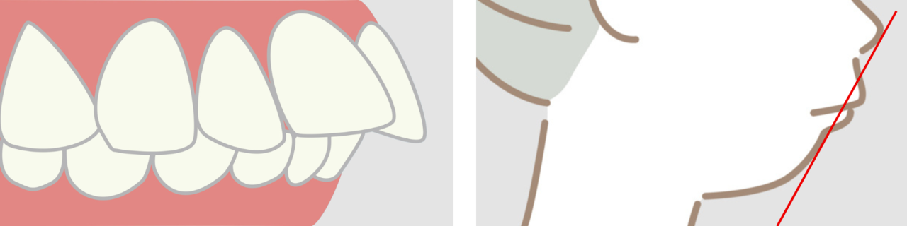 無理矢理、狭いスペースに歯を並べるため、前歯が前方に押し出されて出っ歯になってしまうのです。