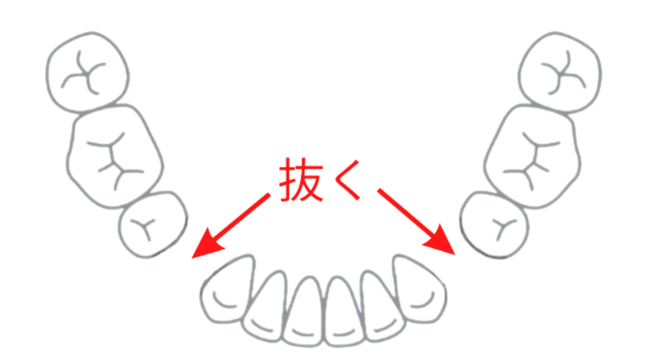 さらに症状によっては、前から4番目の歯を抜歯しして、前歯を並べるスペースを生み出します。