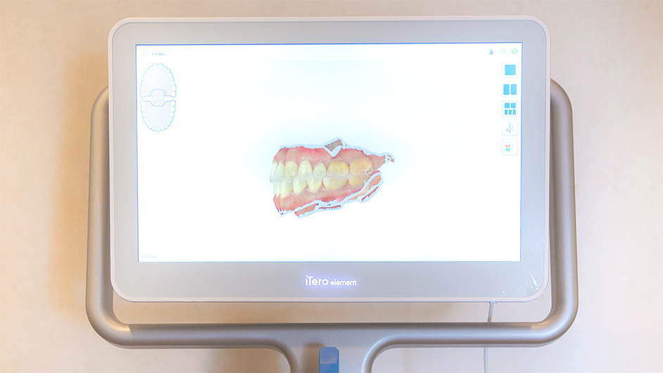 院長がお口の診察を行い、続いて最新の口腔内スキャナー「iTero(アイテロ)」を使って、患者さまの歯をスキャンします。